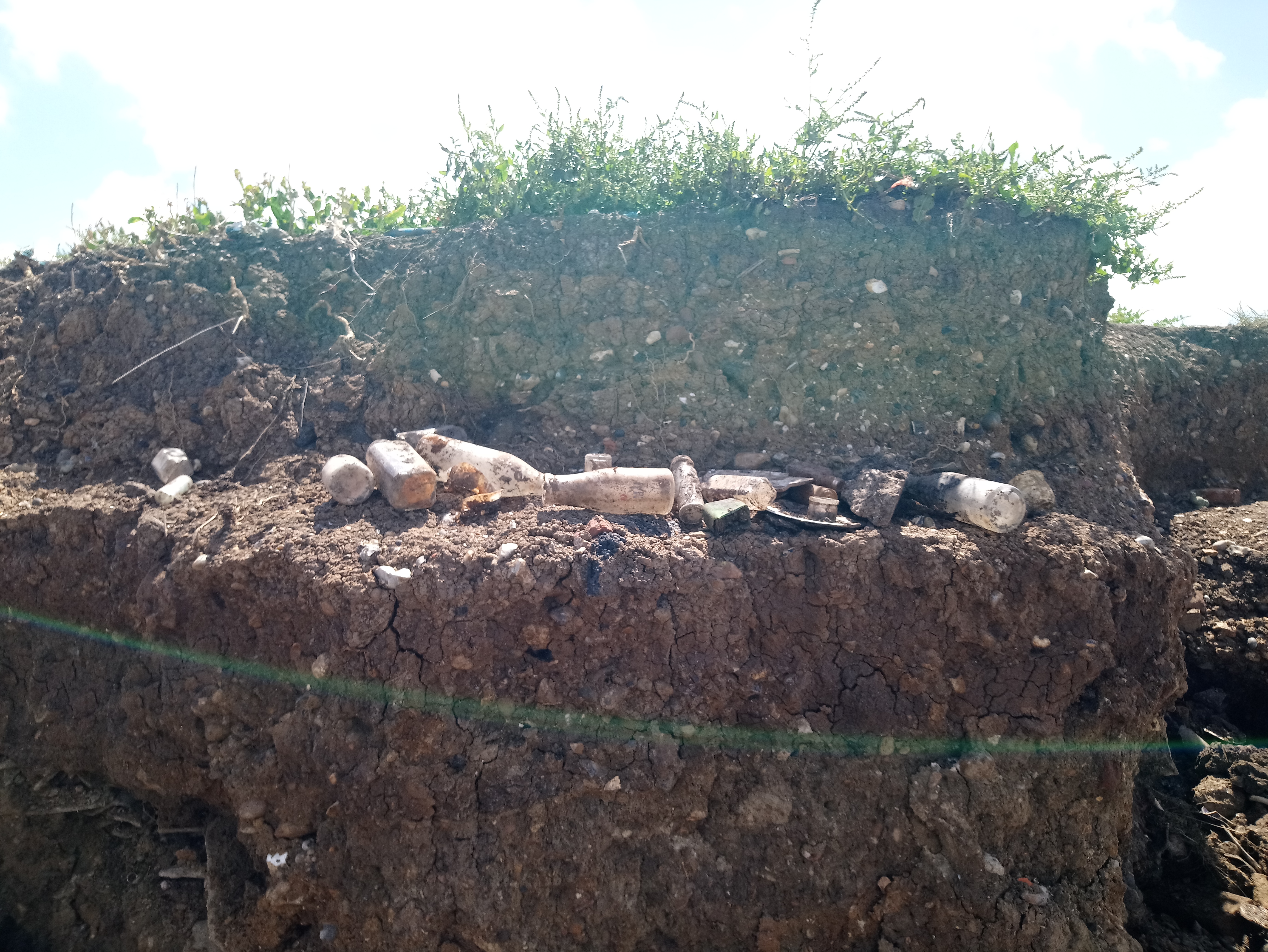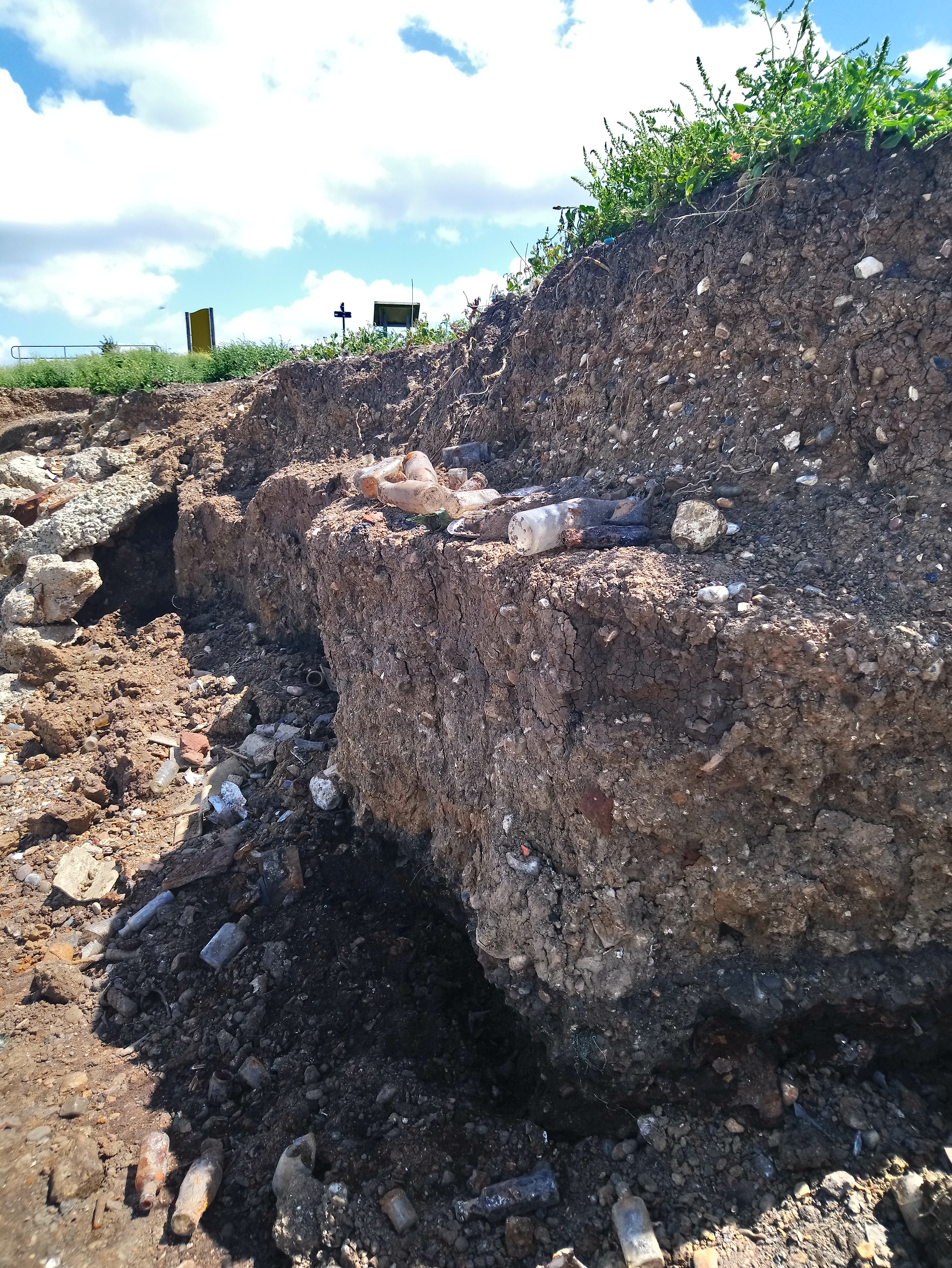 A walk to get sounds, hoping to find the sewage pipe revealved a 70 year old fly tip next to the sea at Tankerton near where the sewage is piped into the sea. Old bottles and news paper from the 1930’s were found there, sea eroision has brought them to the surface on the shoreline. There is also a history of putting landfill next to the sea in the UK.