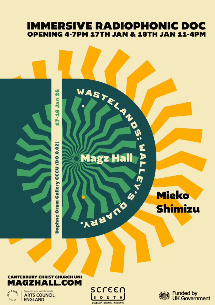 Wastelands: Walleys Quarry an immersive radiophonic documentary, will have its first airing at the WinterSound Festival on Jan 17th 4-7pm and 18th 11-4pm at the Daphne Oram Gallery, room D0.02, Canterbury Christ Church University supported by Screen South and ACE. Via Screen Souths 16 speaker 14.1 channel rig.