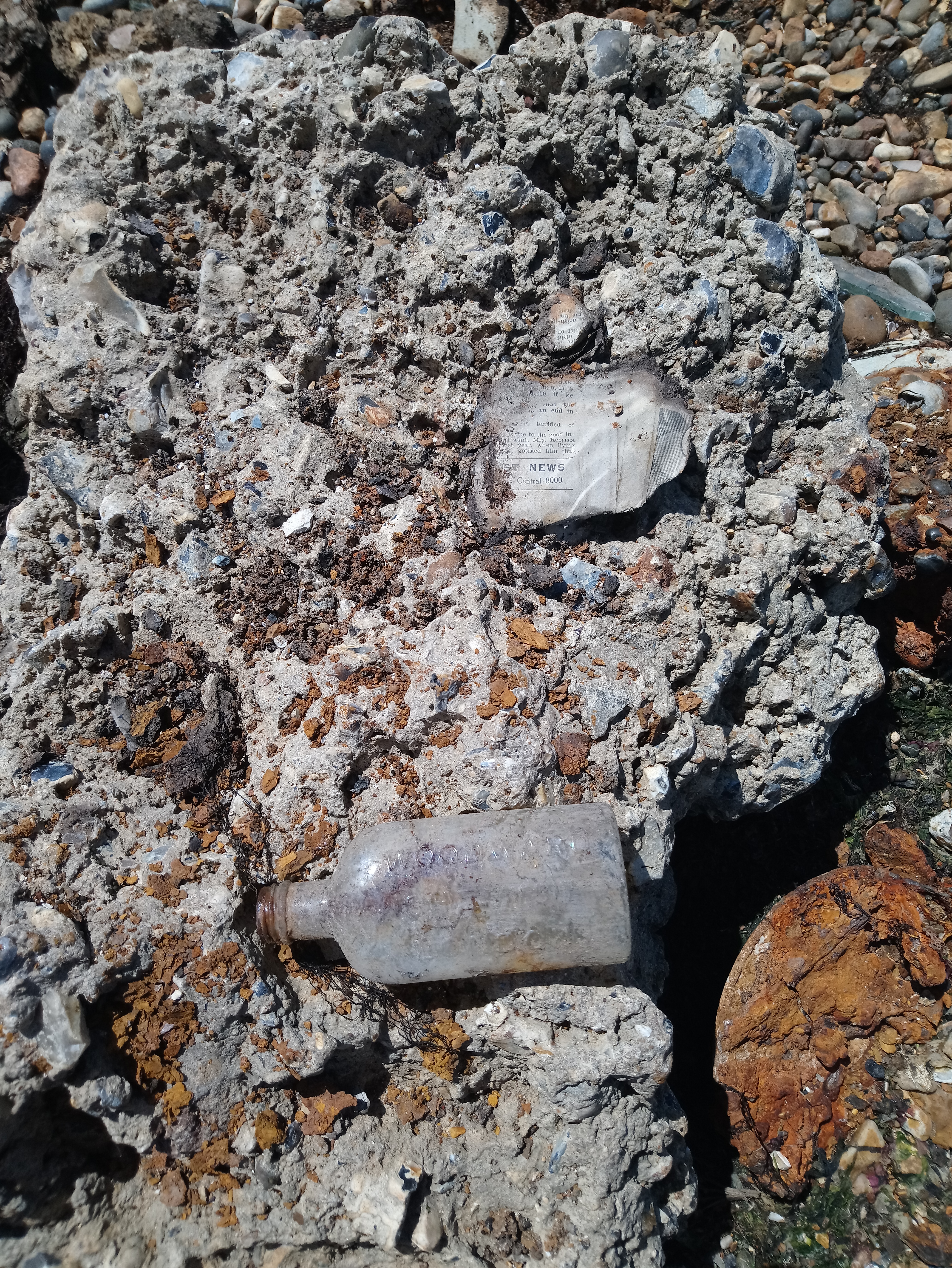 We found glass bottles and newspapers from the 1930’s as sea erosion has brought them to the surface on the shoreline. There is also a long UK history of putting landfill sites next to the sea in the UK and this is also adding to coastal pollution as it finds its way into the sea as this recent report from Queen Mary University highlights.
