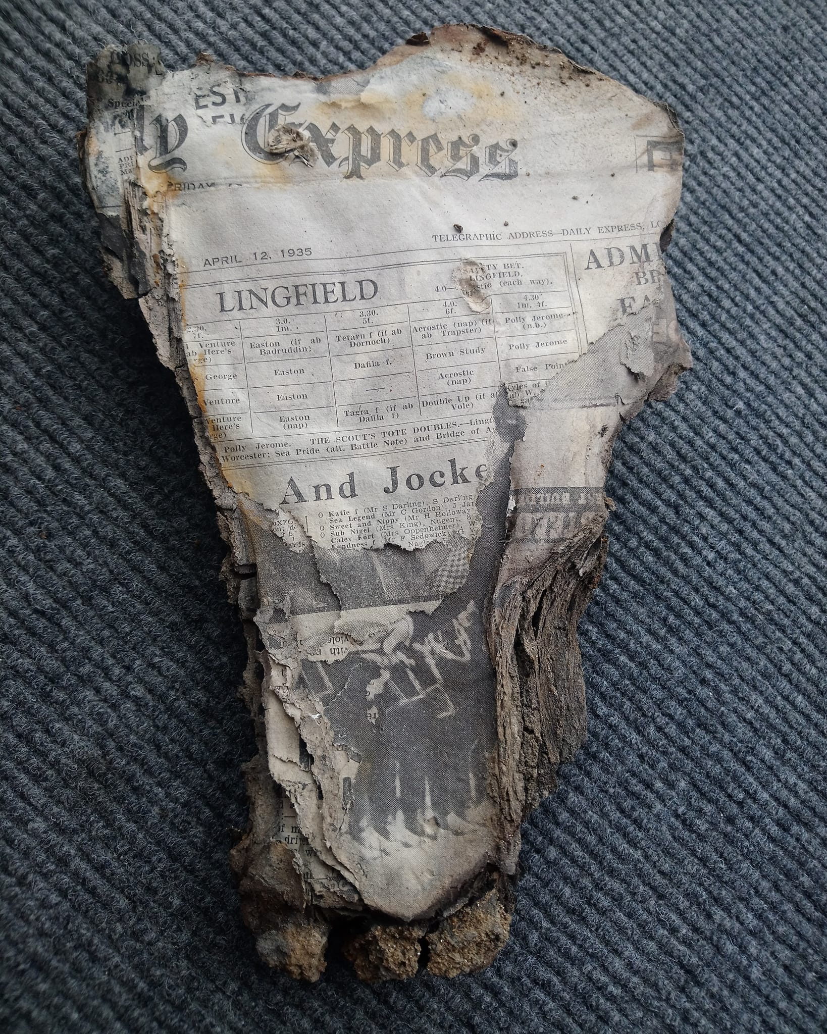 Newspaper found at lanfill Tankerton (image Magz Hall)