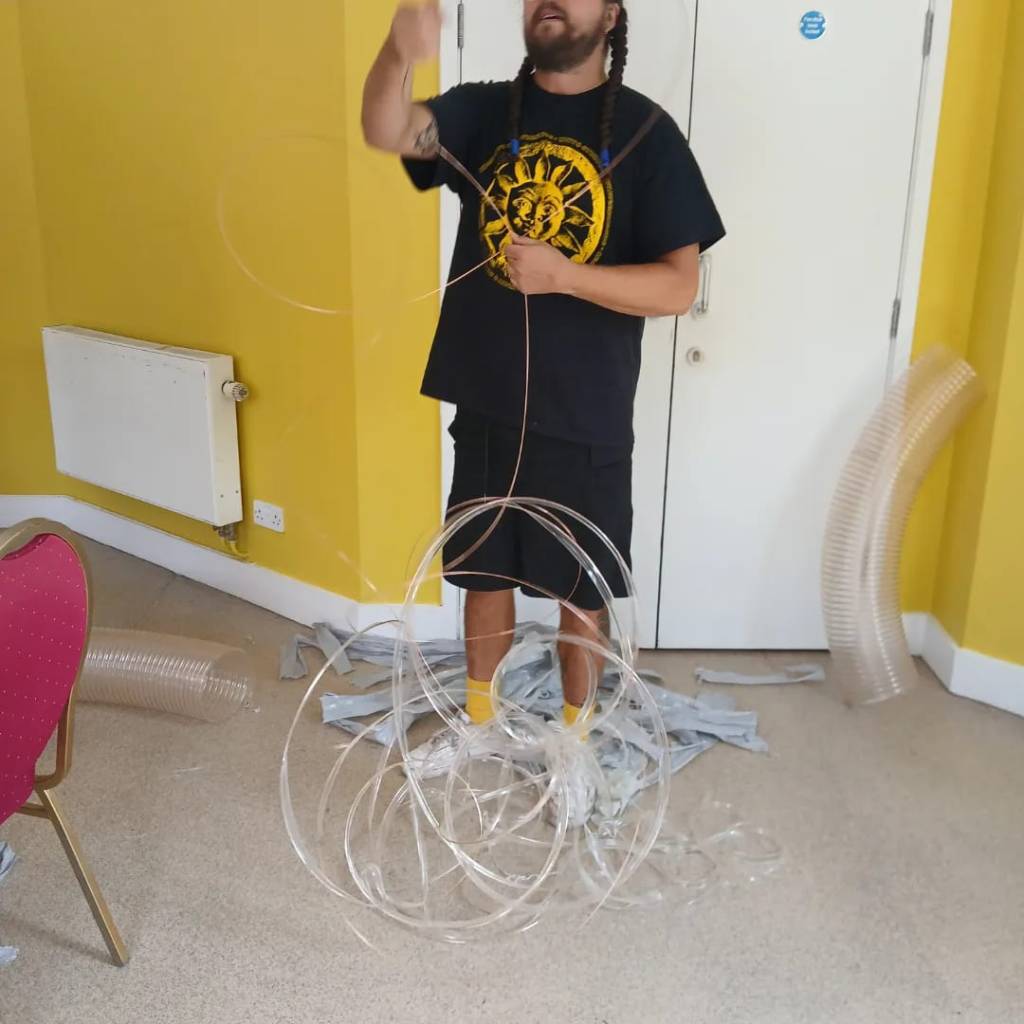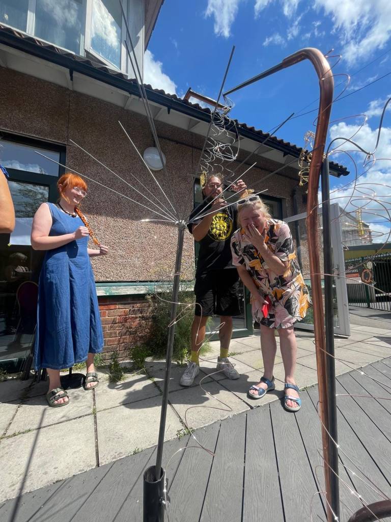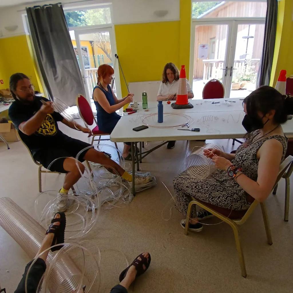 The first public radio air garden has been set up at Windmill Hill City Farm Bristol on 26th of July 2024 supported by the Brunswick School. It kicked off with Radio Art Lab a weekend of radio art workshops, talks and performances. I ran an FM workshop showing people how to make them. Sharing how I see the components as sculptural sound objects, especially the coil which has been used for its electroculture properties in the radio air garden, alongside the aeolian antenna. I also ran a workshop to encourage others to make their own electroculture antenna sculptures for their gardens. I also took part in a talk on ecoustic ecologies with environmental scientists from UWE and Manchester University, Ana Castro-Castellon, Ian Thornhill and fellow artist Lia Mazzari, chaired by Teresa Dillon. Photos below Ibi Feher.